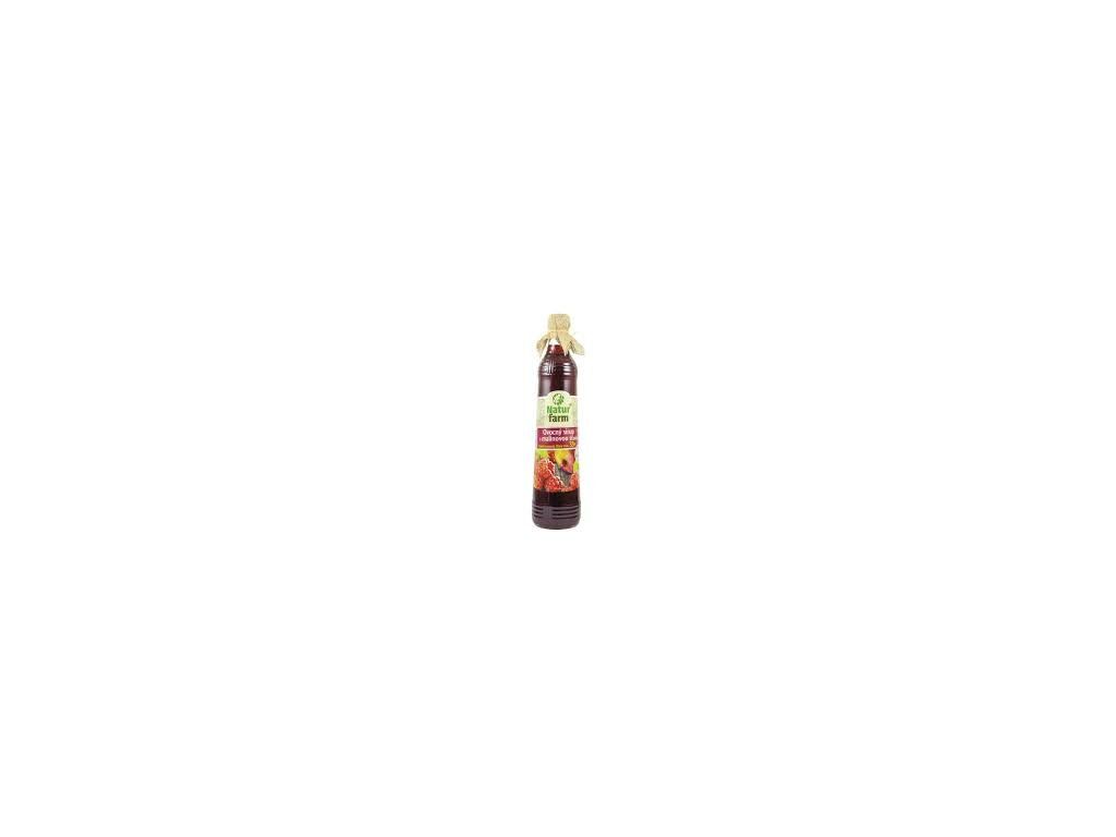 0,7 l fruktózo-glukózový sirup, pitná voda, ovocné šťavy z koncentrátu (jablková 30% a malinová 3%), kyselina: kyselina citrónová, farbivo: antokyaníny, sulfitovo-amoniakový karamel, bazová šťava, hroznová šťava, arómy 1 : 7 min. 33% skladujte na suchom mieste mimo dosah slnečného žiarenia. Neobsahuje konzervačné látky, preto po otvorení doporučujeme skladovať v chladničke a spotrebovať do 7 dní.