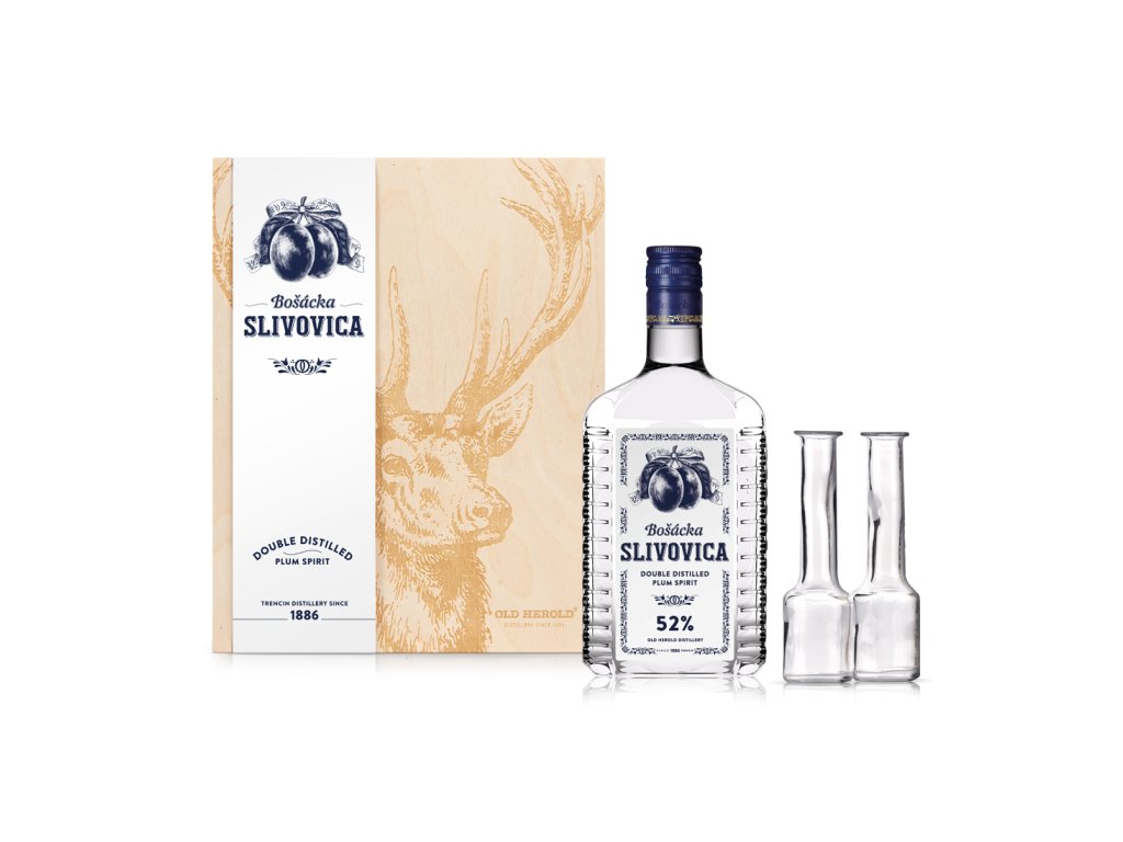 Slivovica Bošácka 52% 0,7L + 2 pijáky „Jeleň“ kazeta